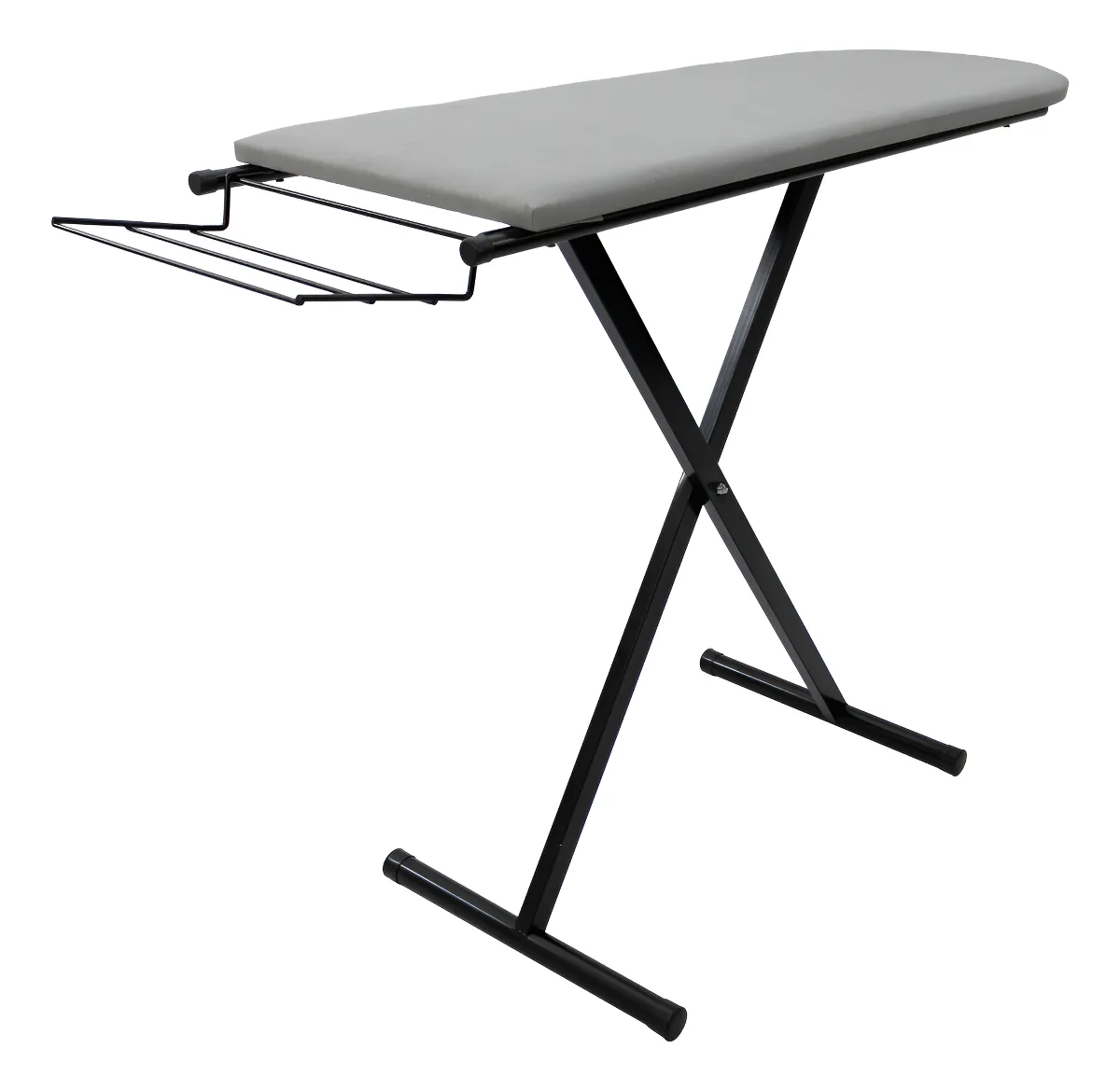 Nossa Tábua de Passar Gold foi projetada para resolver esse problema com maestria. Com estrutura em aço carbono reforçado, pés dobráveis, prancha com base em madeira resistente, suporte aramado dobrável para ferro de passar, tecido metalizado anti-chamas e espuma densa e macia, ela é sinônimo de durabilidade, segurança e conforto.